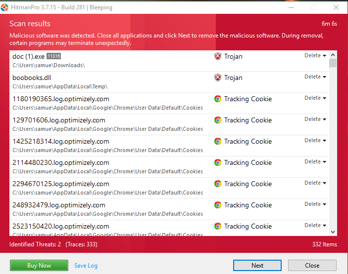 We found that while HitmanPro took just under 5 minutes to scan and found the exact malware we’d installed, the scanner also identified a load of tracker cookies it considered malicious, which we hadn’t purposefully downloaded. It should be noted that tracker cookies are common, even from reputable websites,  and are generally nothing to be too concerned about.
