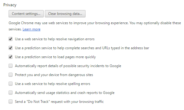 Google Chrome Security Settings