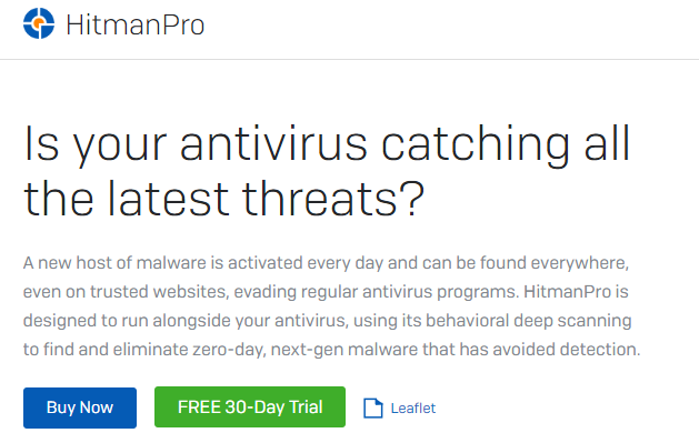 Go to the HitmanPro website and download the 30-day free trial