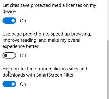 Scroll all the way to the bottom, and turn on SmartScreen filter